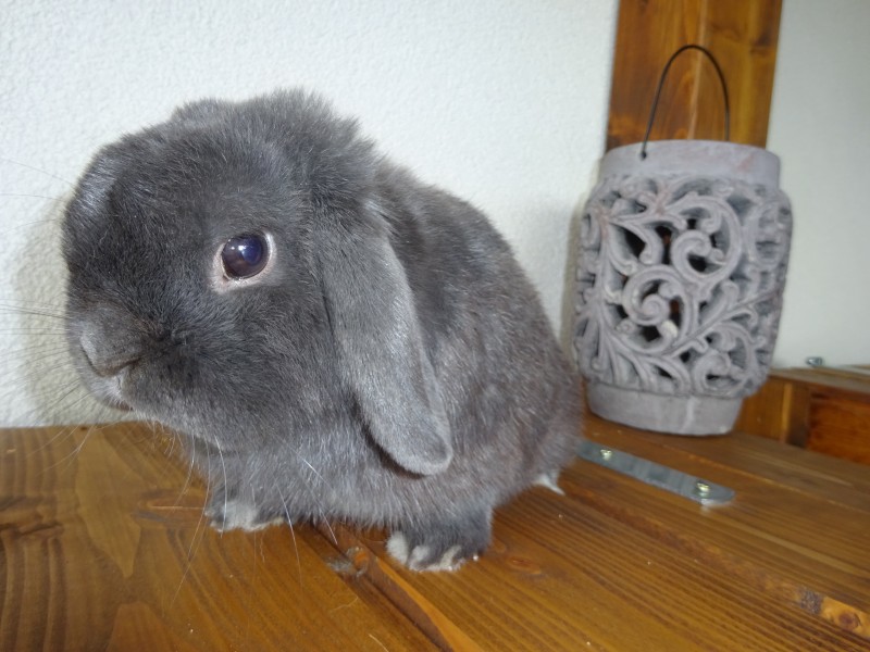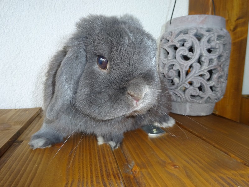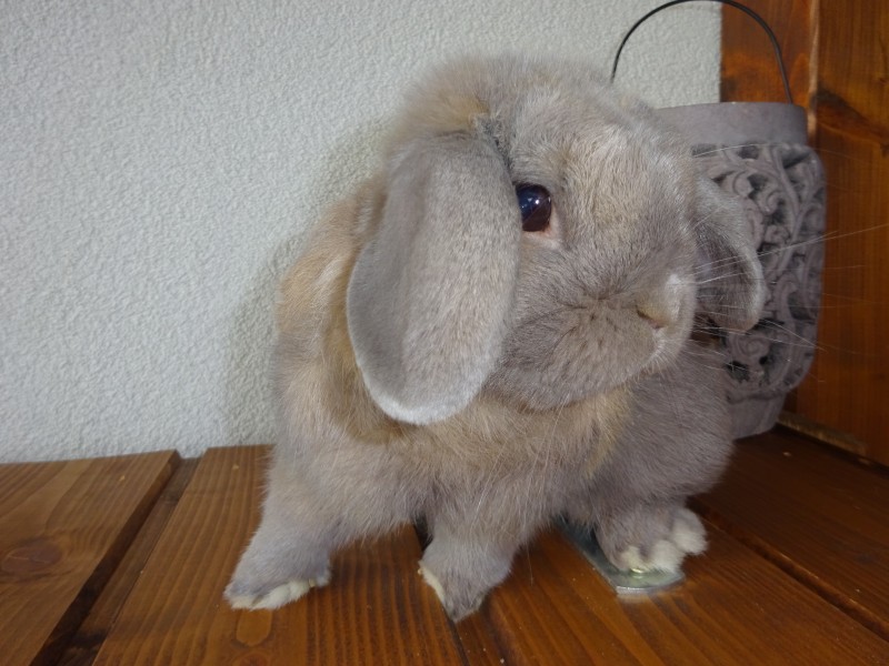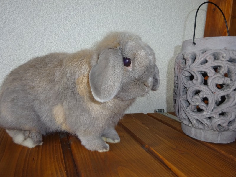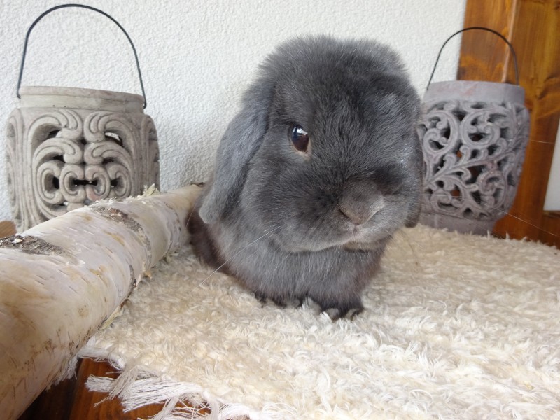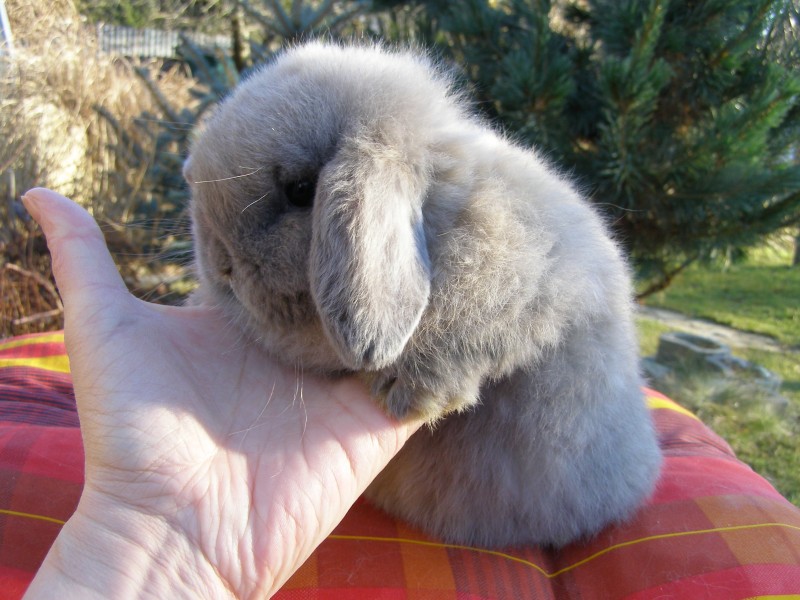 Úžasný sameček s velkou, kulatou až placatou hlavou. Malý, nízký a robustní ráz - typový, tak jak má minilop vypadat. Vzhledem ke kvalitním předkům z Anglie, je Fído v našem chovu velkou posilou, náš poklad. Předává typ i barvy, které se nám líbí.. Synové a vnuk viz výše, jeho potomky si nešlo nenechat v chovu:-)