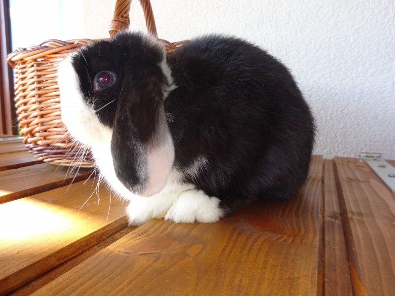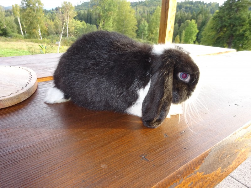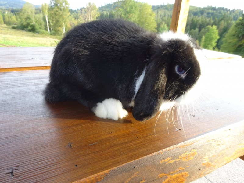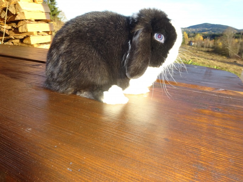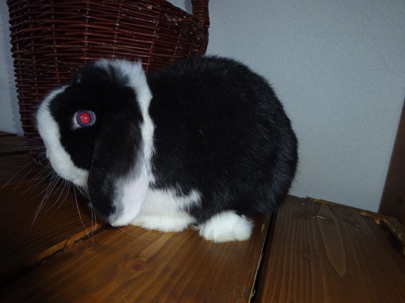 Zazibarka jsme nedávno importovali z SK, na fotkách níže je ve věku necelých šesti a čtyř měsíců. Potřebovali jsme změnu jak v "krvi" tak v barvě. I když černou příliš nepreferuji, tak černo - bílá kombinace se mi nakonec líbí, hlavně jsem chtěla do chovu opravdu pěkného samečka v typu. Je menší ale zároveň zavalitý, v husté srsti. Díky letité spolupráci jsem tedy po delší době získala samečka dle mých představ. Jako výrazný, leč často opomíjený bonus je povaha králíčka a Zazibar je v první řadě neskutečně milý a mazlivý, vysloveně se placatí ven a čeká na pohlazení. Při focení si ale cestoval:-))